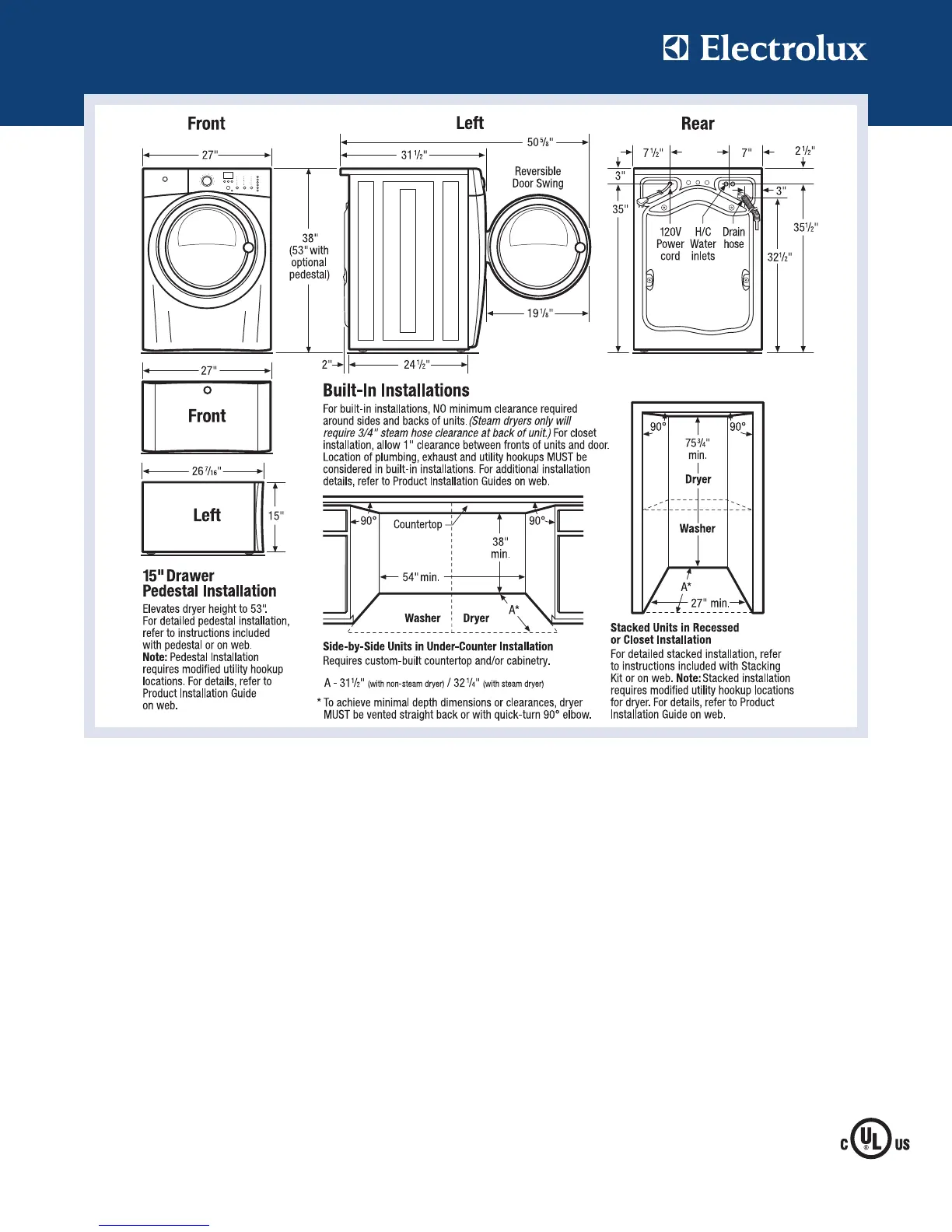 stacked beneath matching Electrolux Dryer, which requires installation of