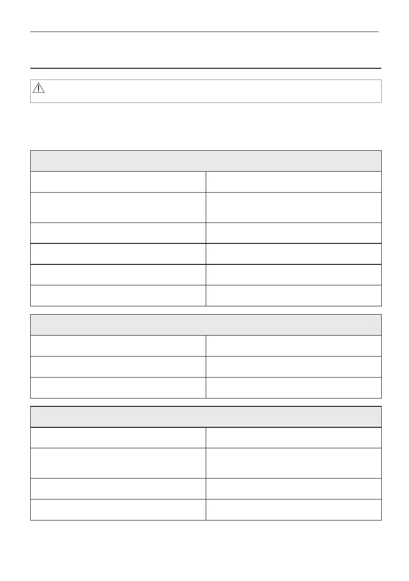 Dans tous les cas ne figurant pas dans ce tableau, veuillez contacter un service après-vente