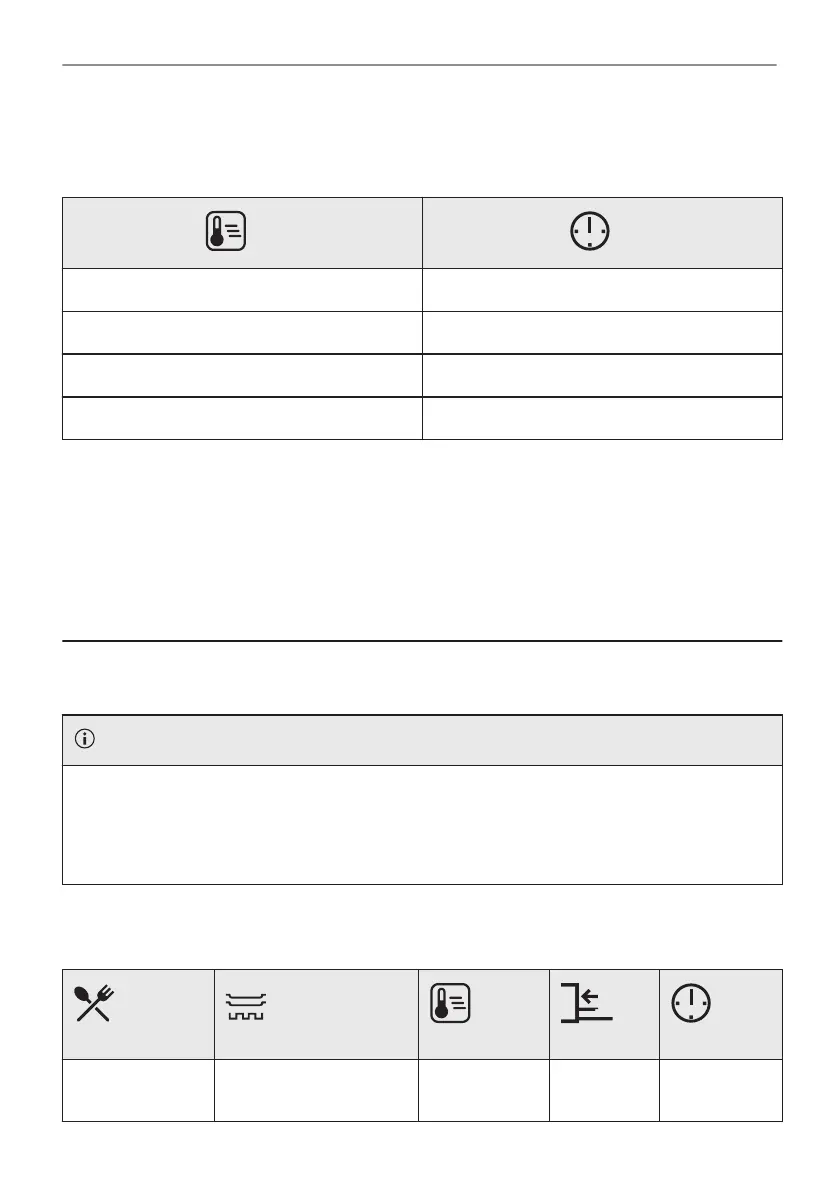 The temperature and cooking times in the tables are guidelines only. They depend on the recipes