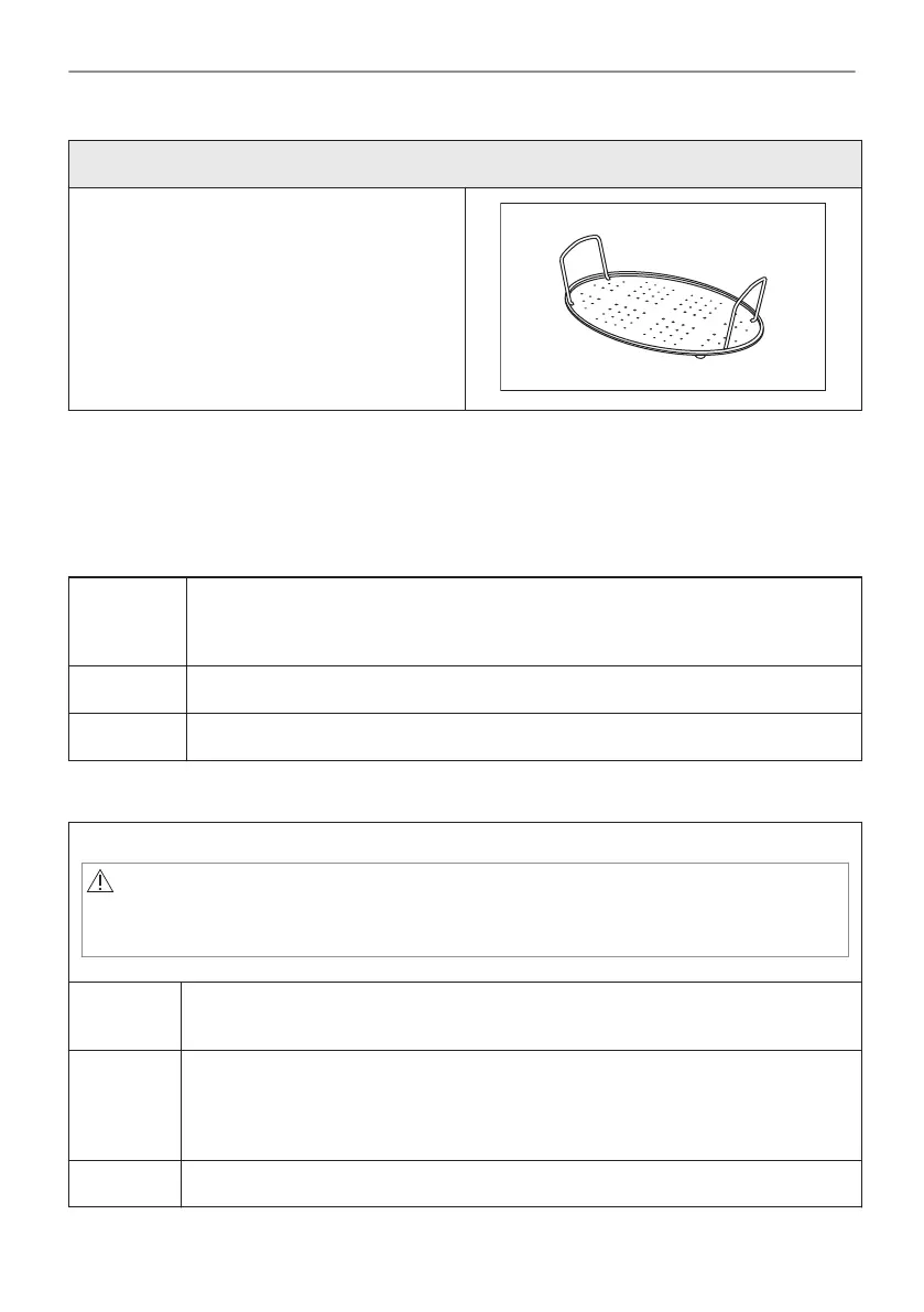 Placez le plat de cuisson sur le gril en acier. Ajoutez de l’eau. N’utilisez pas le couvercle.