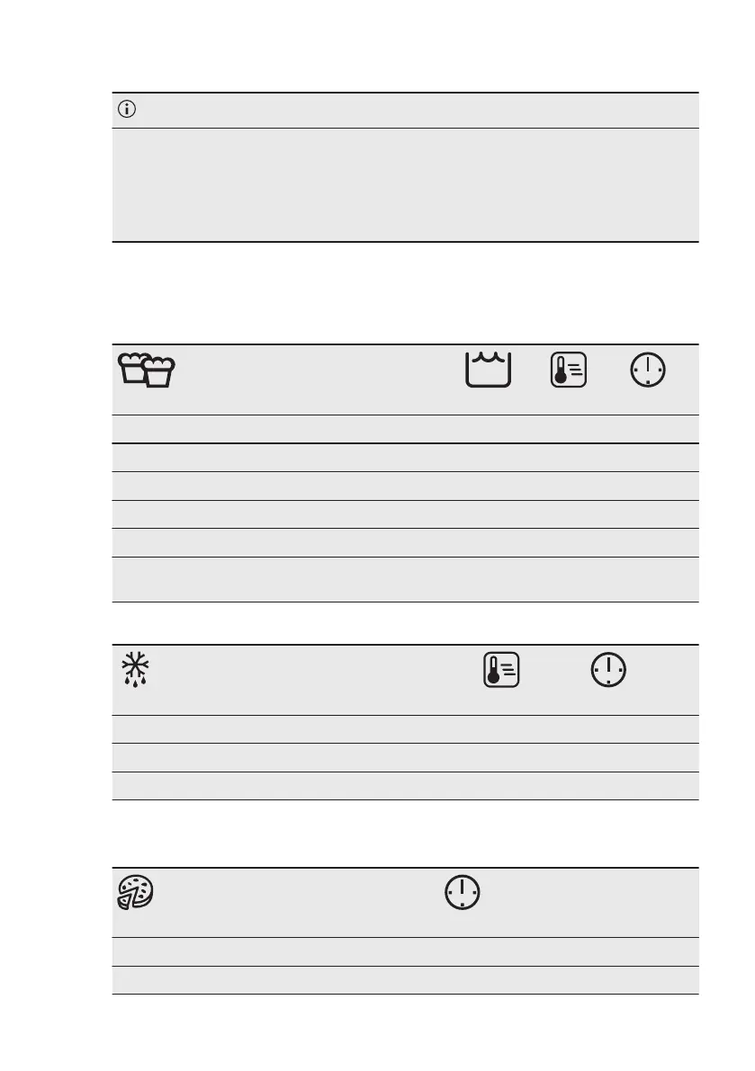 Your oven may bake or roast differently to the oven you had before. The tables be‐