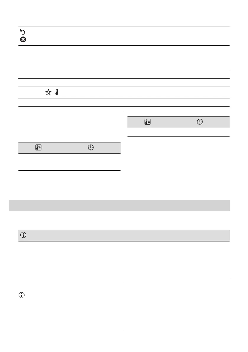 The temperature and cooking times in the tables are guidelines only. They depend on the recipes and the quality