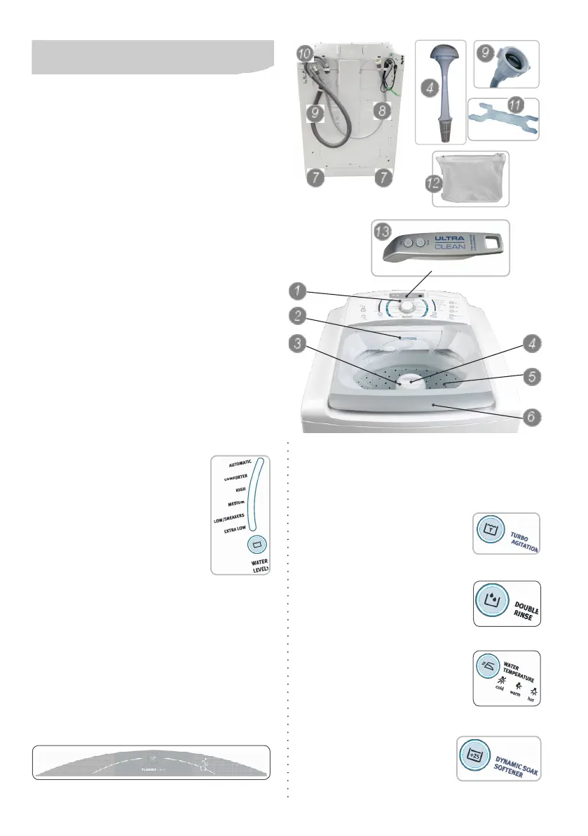 8. Water inlet hose and lter (
