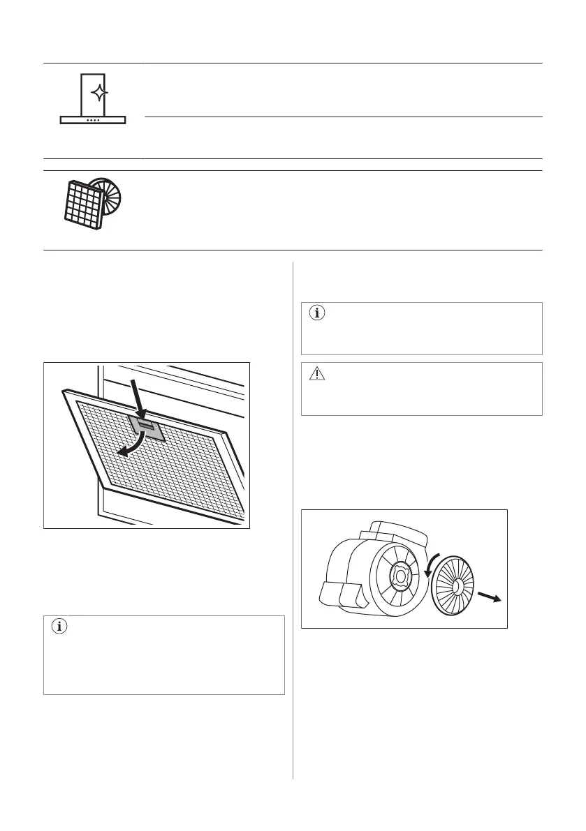 rengjører fettfilteret. Det aktiverte kullfilteret kan ikke vaskes eller regenereres, og må byt‐