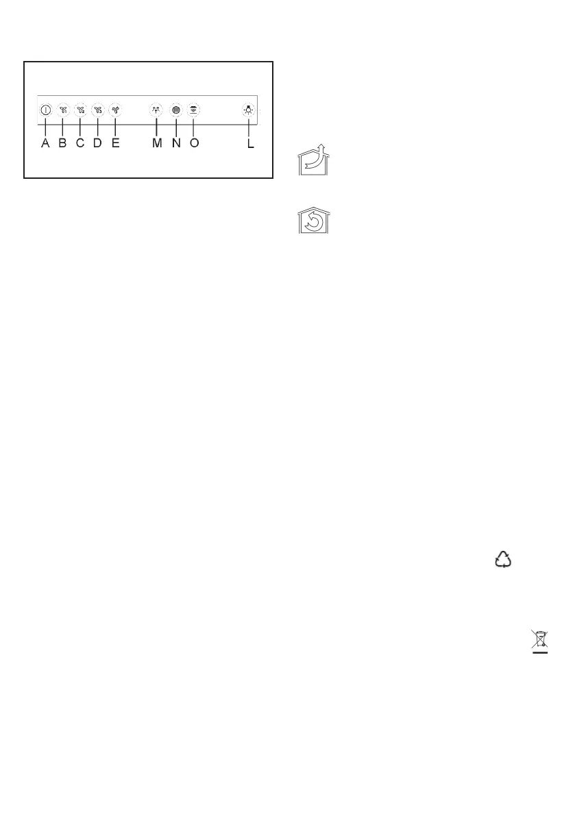 N: Filter alarm indikator / Reset. Når indikato-