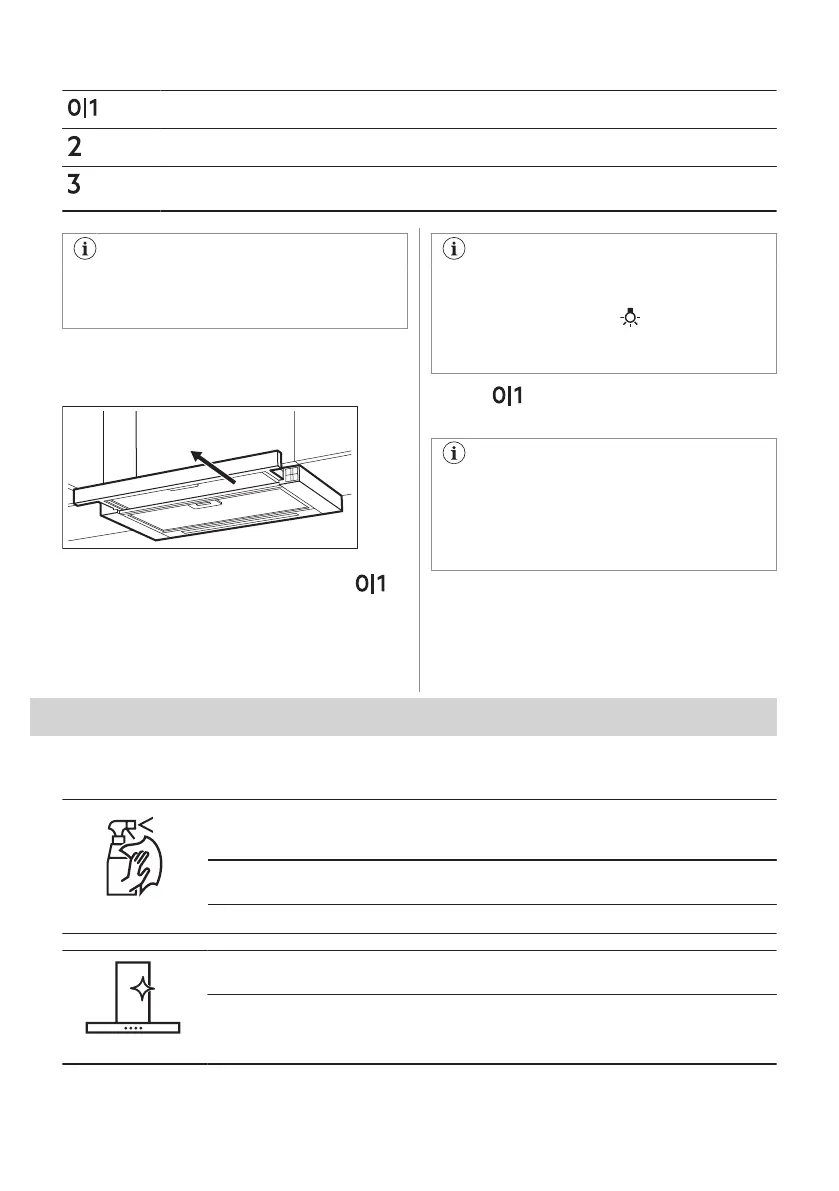 Tryk på eller luk emhætteskuffen for at