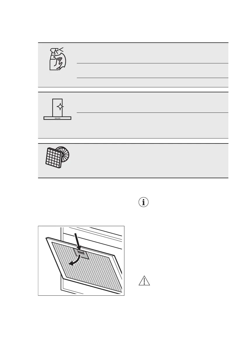 iekšpusē un no tauku filtriem. Tauku vai citu pārtikas palieku uzkrā‐