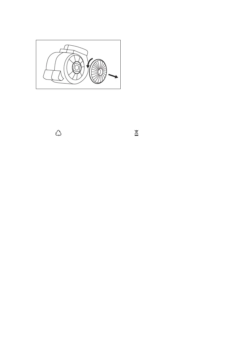 2. Draai de filter linksom (1) en trek