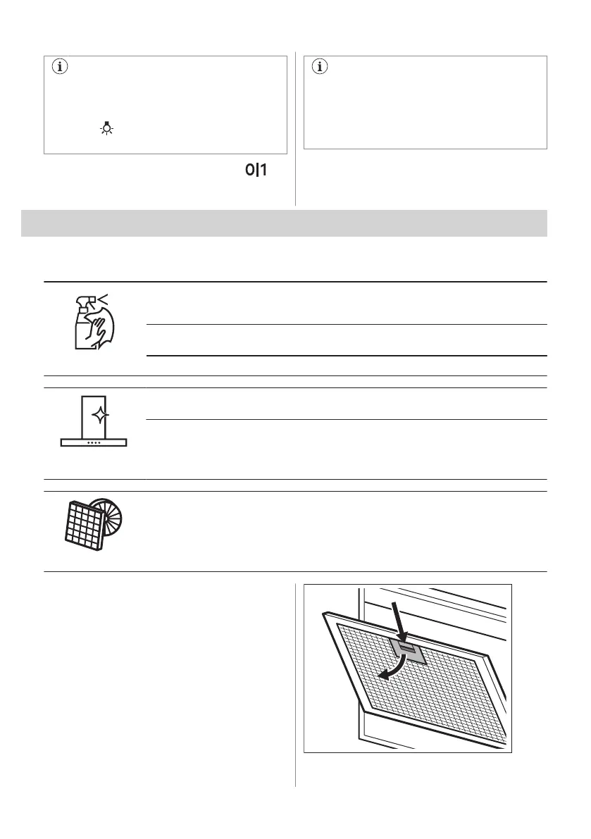 Spotřebič a tukové filtry čistěte každý měsíc. Vnitřek a tukové filtry šetrně očistěte od tu‐