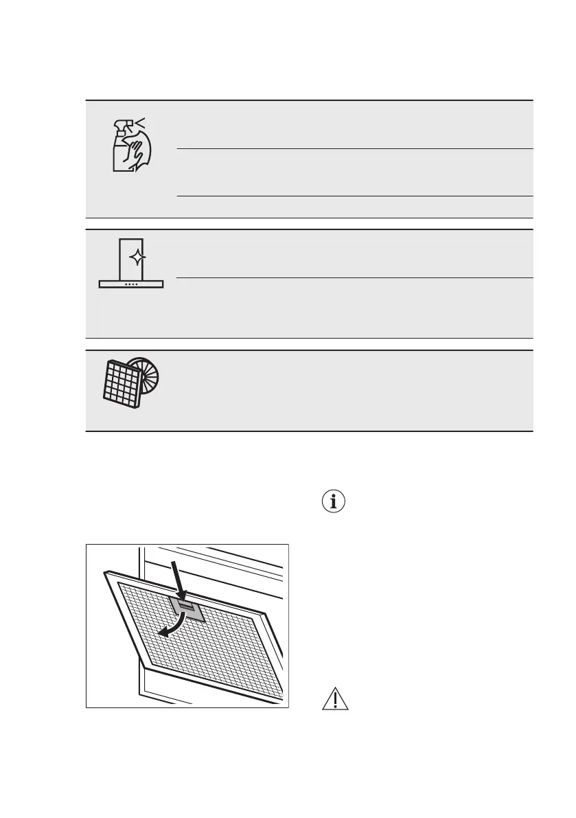 Spotřebič a tukové filtry čistěte každý měsíc. Vnitřek a tukové filtry