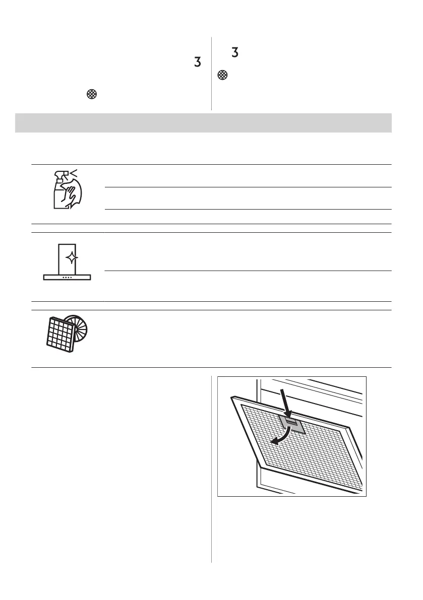 Rengör produkten och fettfiltren en gång i månaden. Rengör insidan och fettfiltren noga