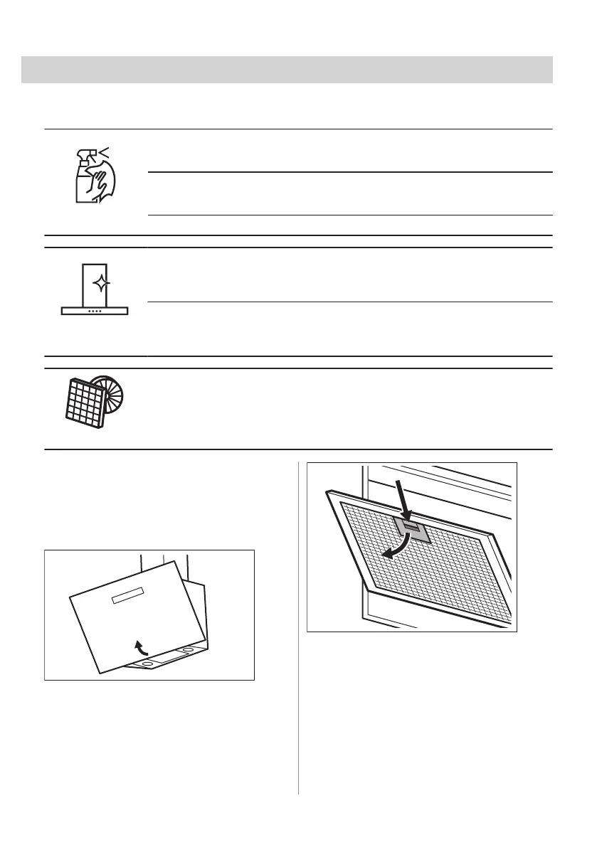Pulire l'apparecchio e i filtri del grasso ogni mese. Pulire accuratamente l'interno e i filtri
