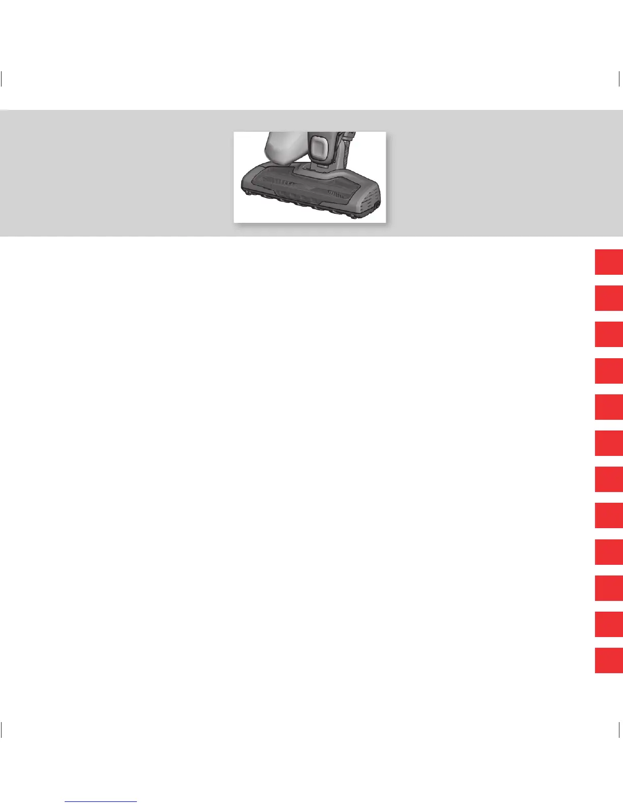 rotative, répétez l'opération. Pour des raisons de sécurité la fonction BRUSHROLLCLEAN™ s'arrête automatiquement au bout de 30 secondes. Si cela se produit, replacez l'ERGORAPIDO™ sur le support de charge pendant 10 minutes pour