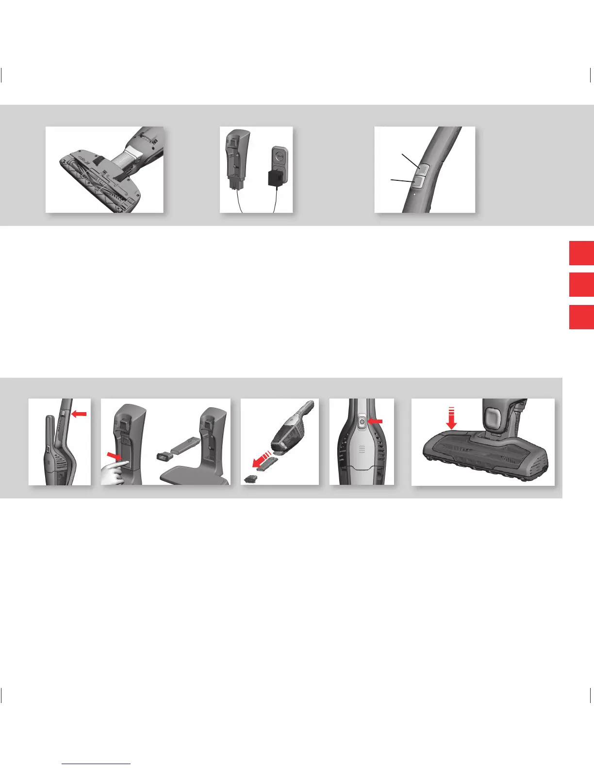 1. При включении пылесос ERGORAPIDO™ работает в режиме высокой мощности. 2. Для того,