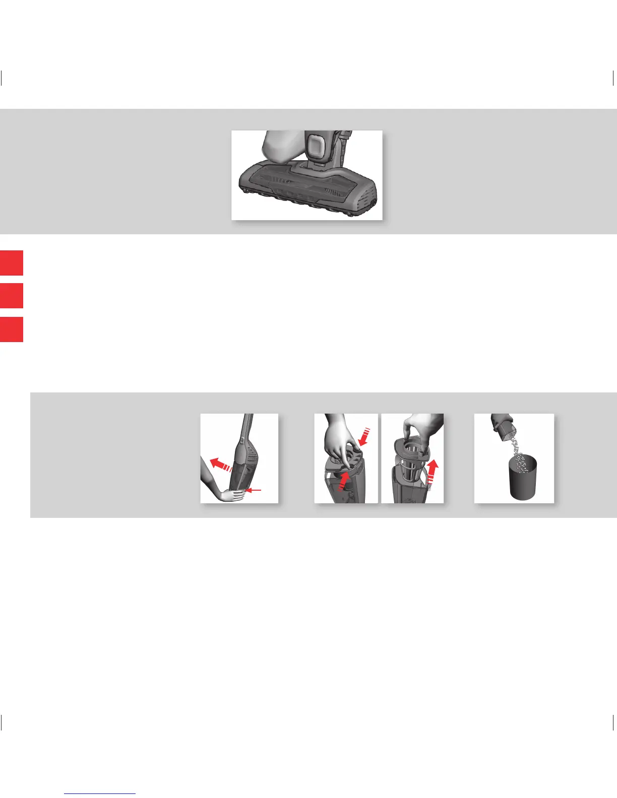 1. Поставьте пылесос ERGORAPIDO™ на ровную и устойчивую поверхность. Не используйте функцию BRUSHROLLCLEAN ™, если прибор находится на ковровом покрытии. 2. Когда пылесос включен, нажмите ногой на педаль