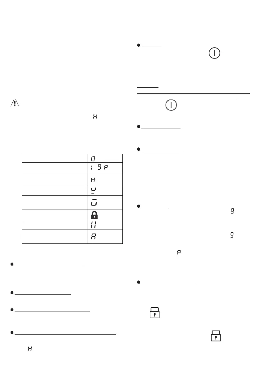 keittoalue" ja "Käyttölämpötila" tai "Lock-toiminto" tai