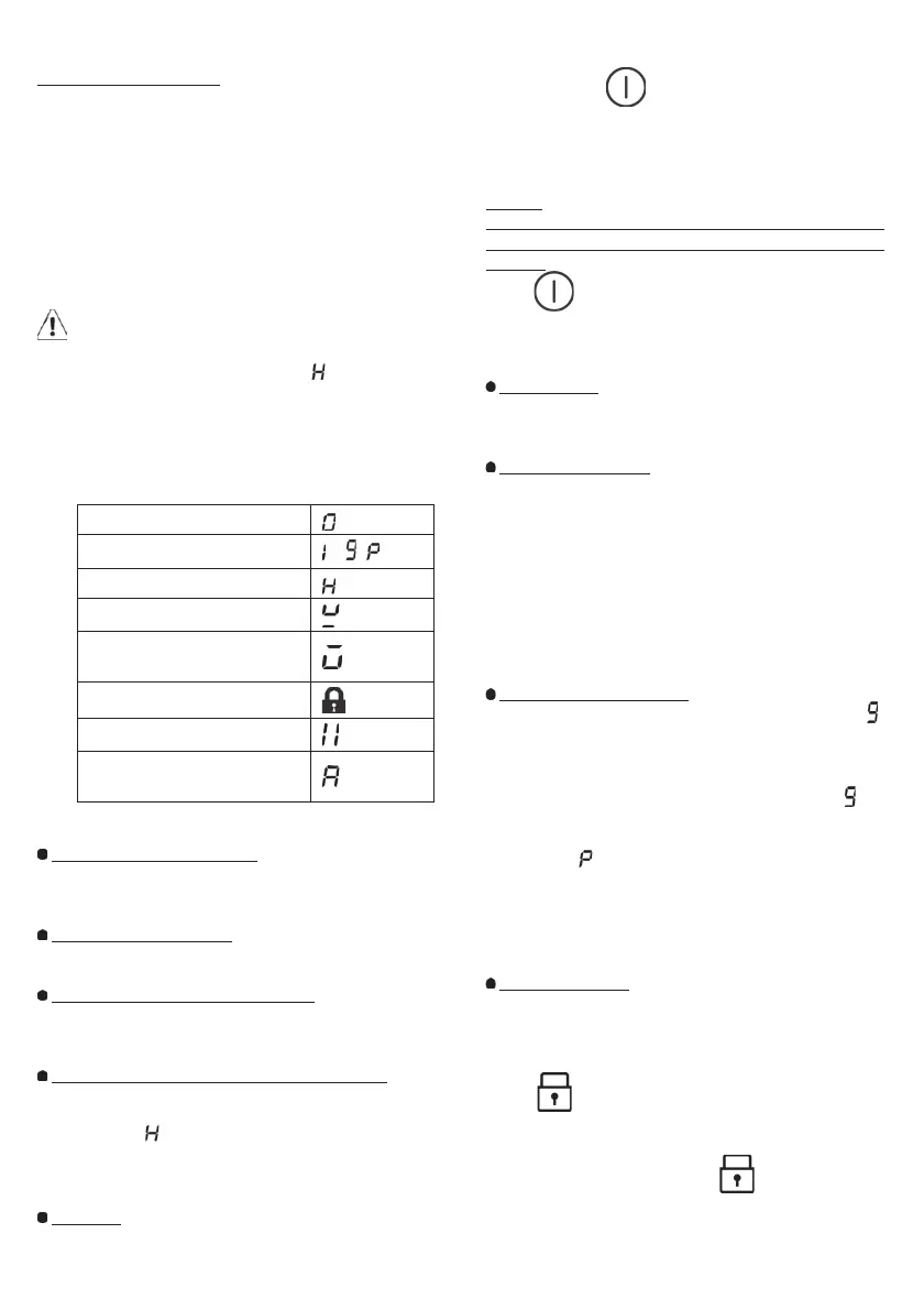 Knapplåset tillåter att blockera kokhällens inställningar, för att undvika