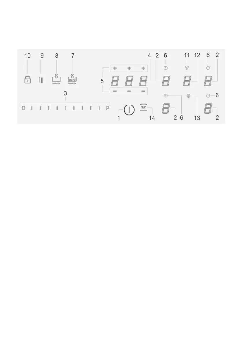 1. ON/OFF des Kochfelds/Gebläses