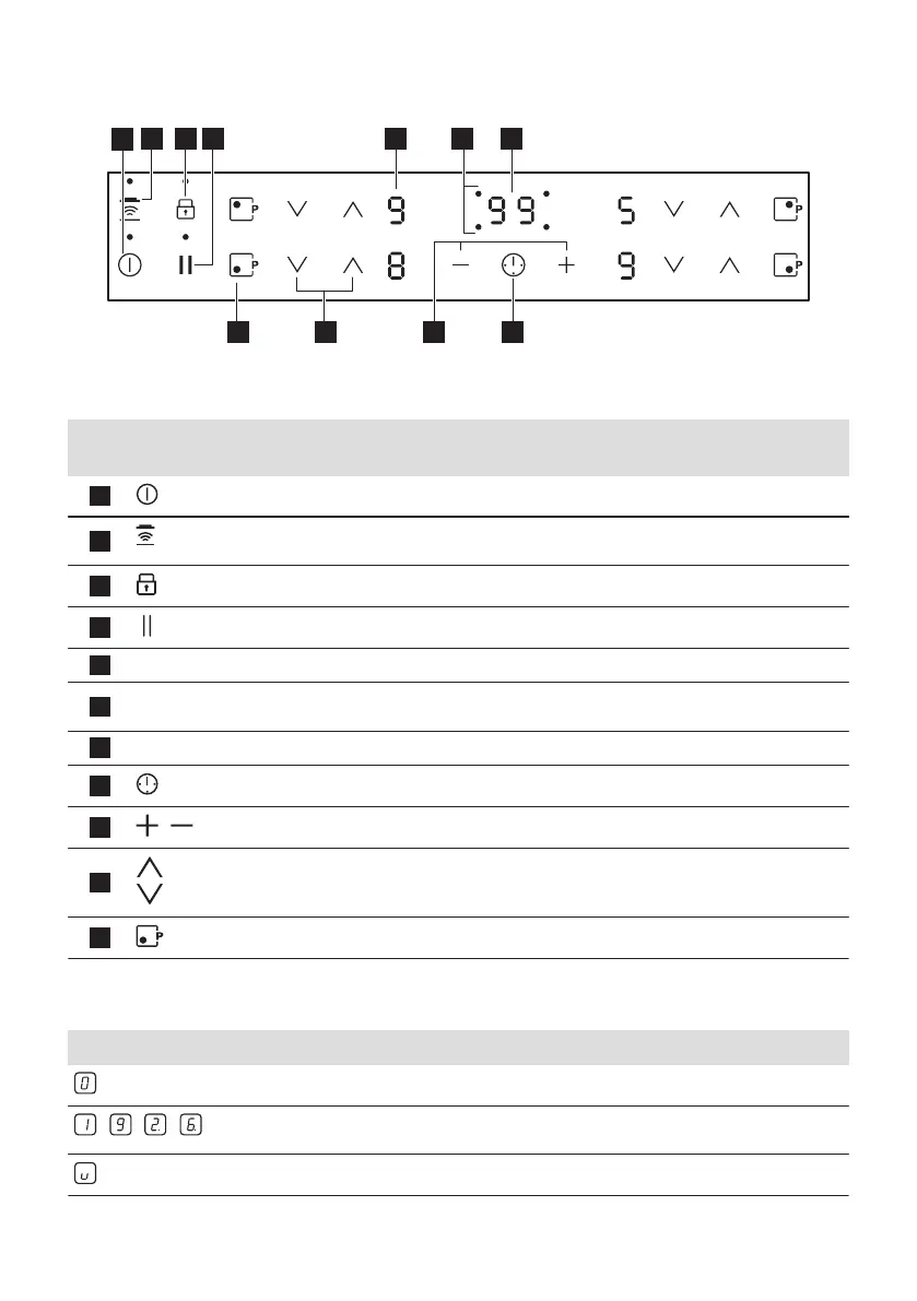 - Kochzonen-Anzeigen des Timers Zeigt an, für welche Kochzone die Zeit eingestellt wur‐