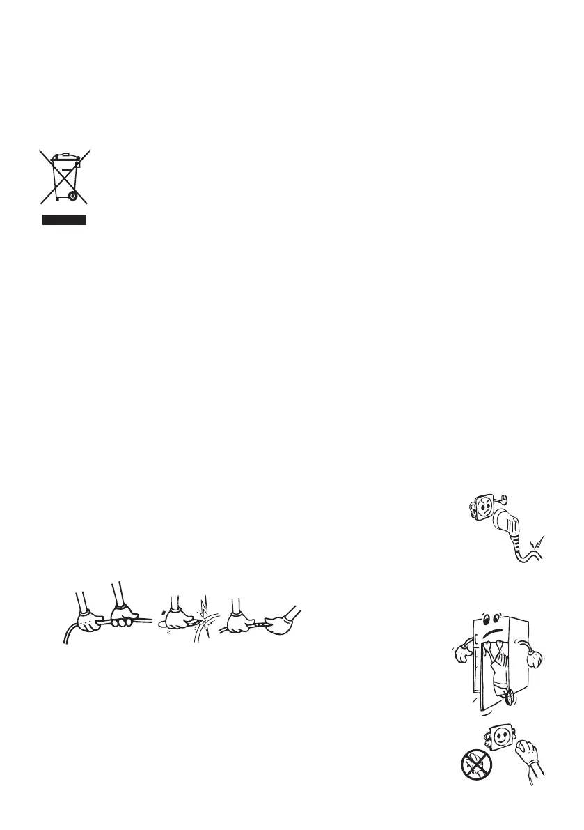 • Do not pull, bend or damage the cord.