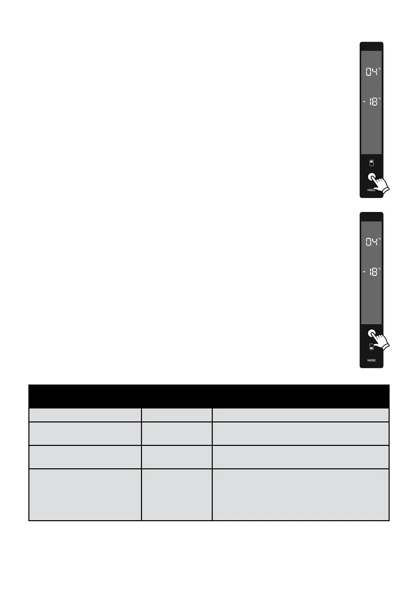 • The initial temperature value for the freezer setting indicator is -18°C.