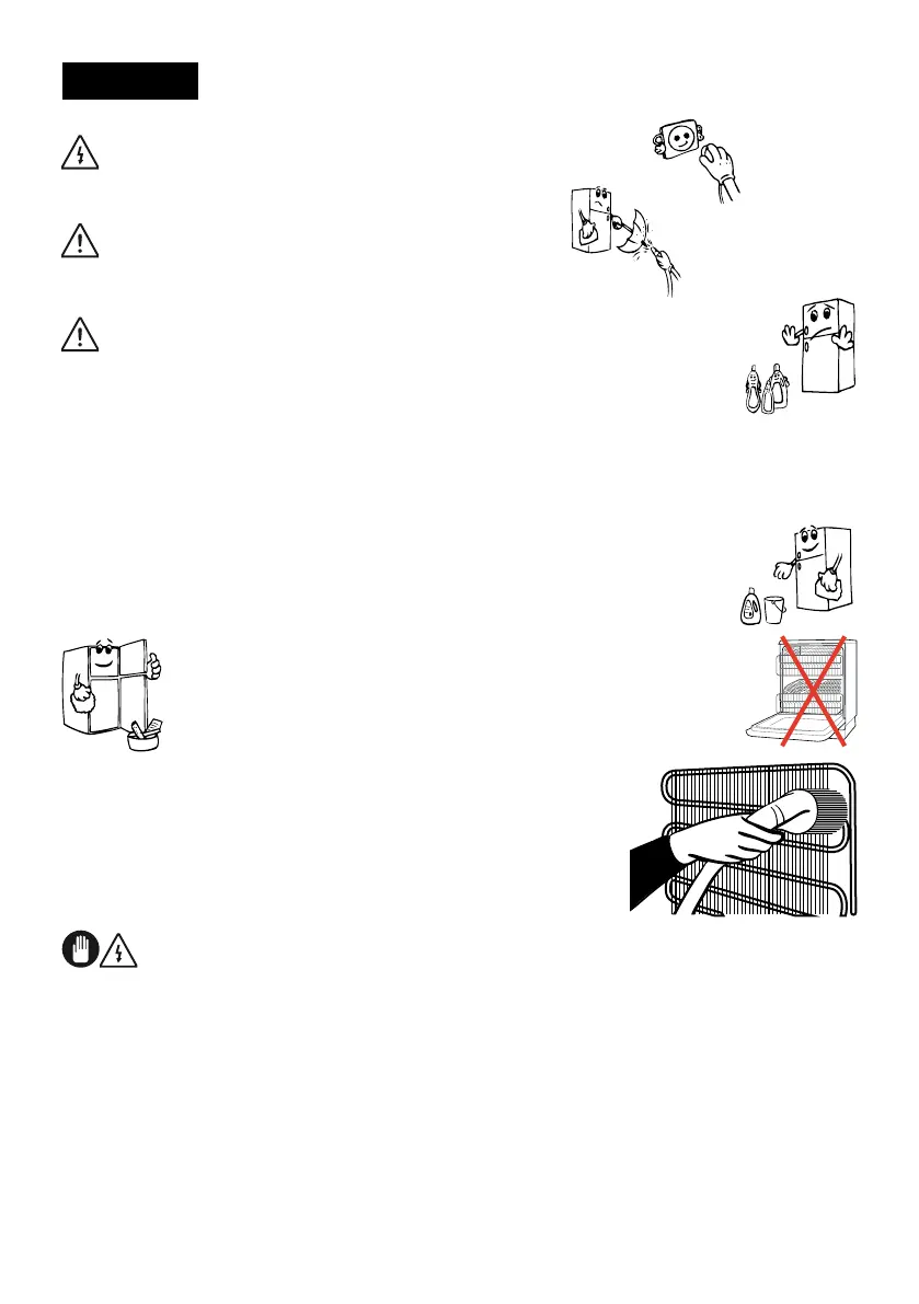 • The appliance should be cleaned regularly using a solution of bicarbonate