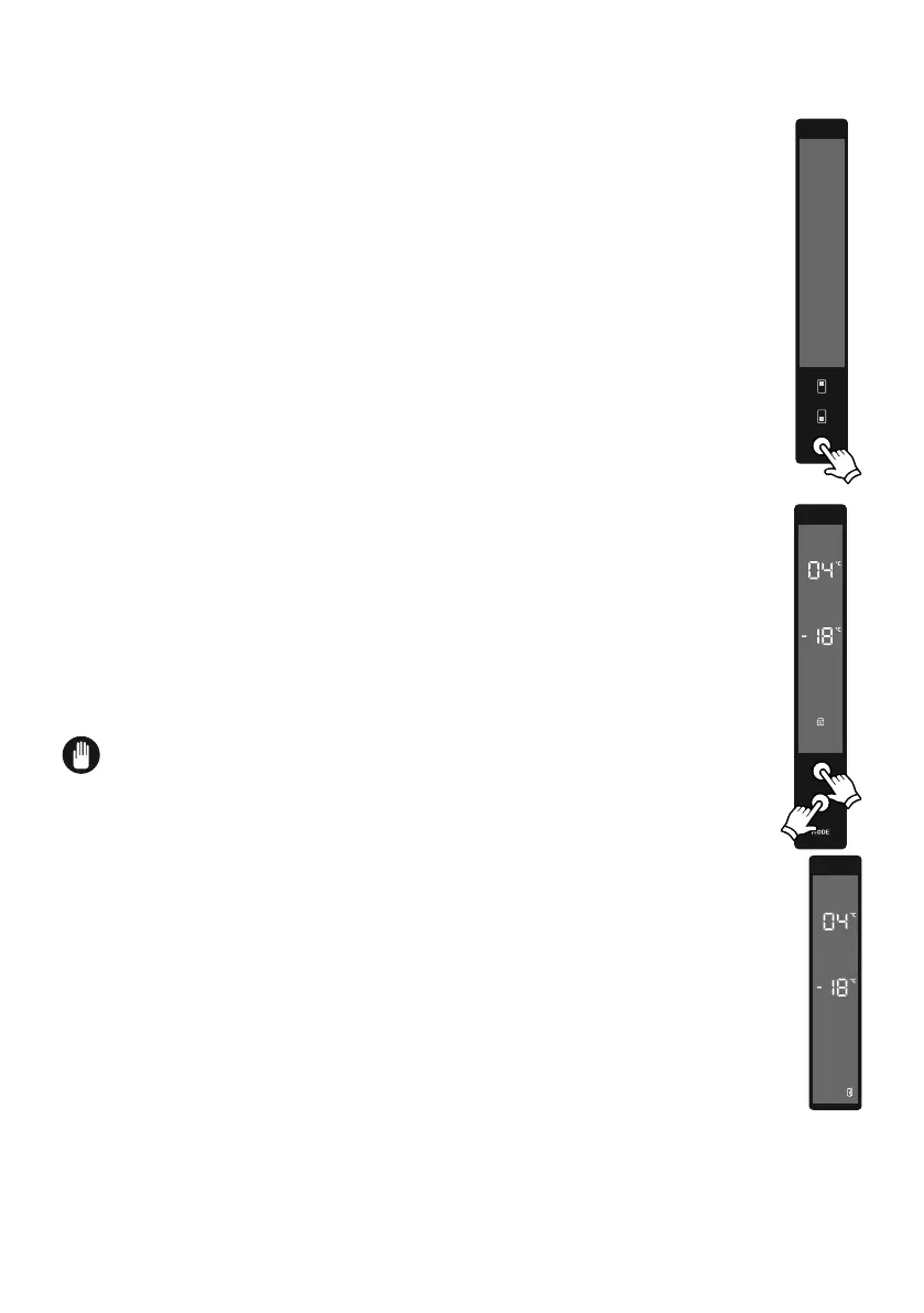Tryck på knapparna Frys och Kyl samtidigt i 5 sekunder.
