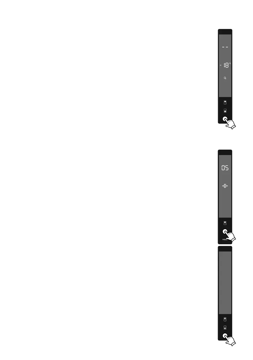 • Kuvasarja käynnistyy pakastimen asetusarvonäytössä, ja 05 vilkkuu jäähdyttimen