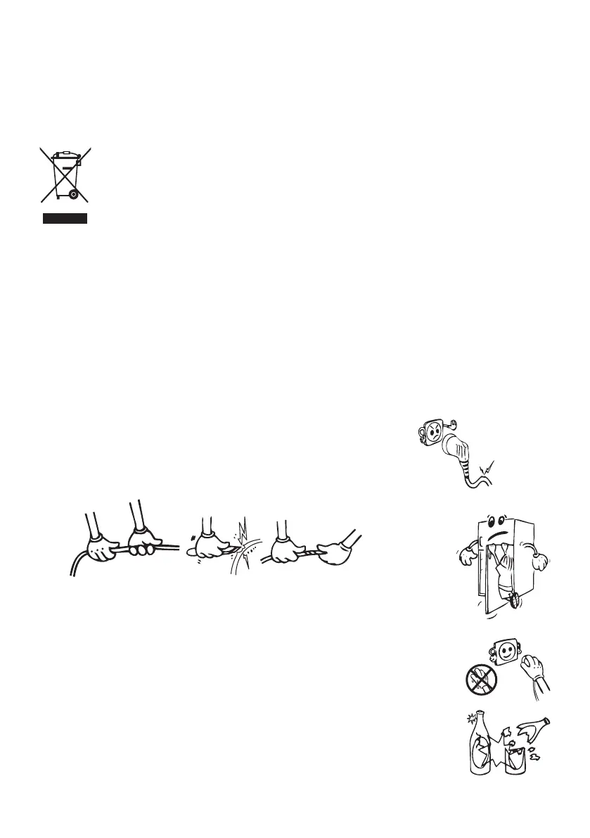 • Sätt inte in och dra inte ut kontakten ur uttaget med våta händer för att