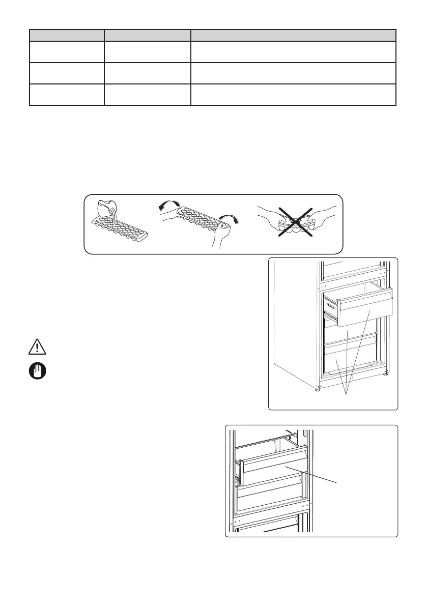 • Kun jäätä on muodostunut käännät vain jääkuutiolokeroa niin kuutiot irtoavat helposti.
