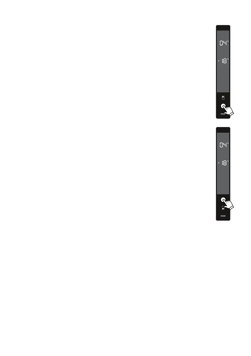 • The initial temperature value for the freezer setting indicator is -18°C.