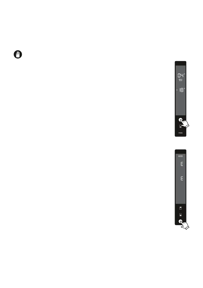 • Na segmentoch teploty mrazničky a chladničky sa zobrazí písmeno „E“.