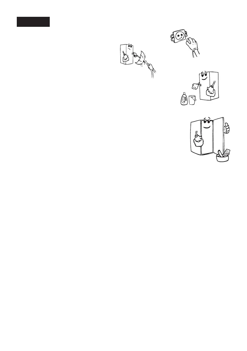 • Prieš pradėdami valyti šaldytuvą įsitikinkite, kad jį atjungėte.