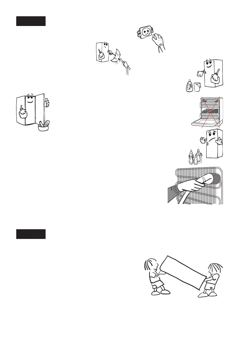 • Kjøleavdelingen bør rengjøres med jevne mellomrom med lunkent