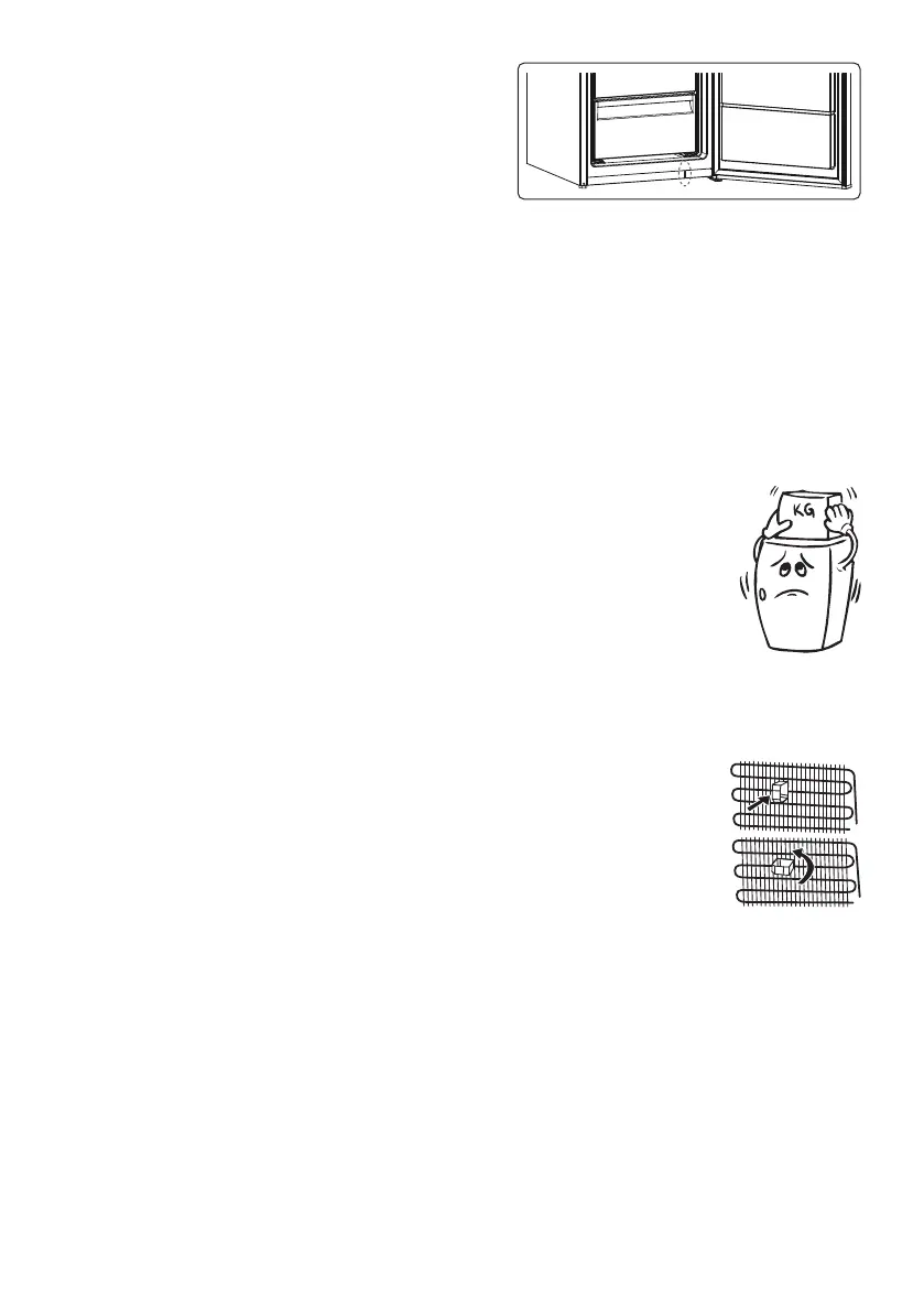 • Säädettävät etujalat on asetettava sopivalle korkeudelle siten, että jääkaappi toimii