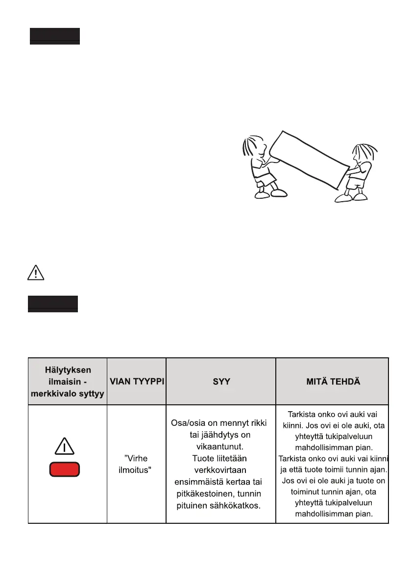 • Jääkaappi on pakattava paksuun pakkaukseen ja sitoa vahvalla narulla sekä noudata