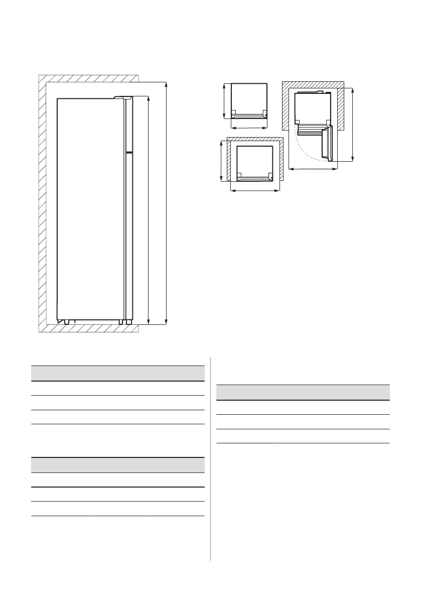 ² the height, width and depth of the appliance
