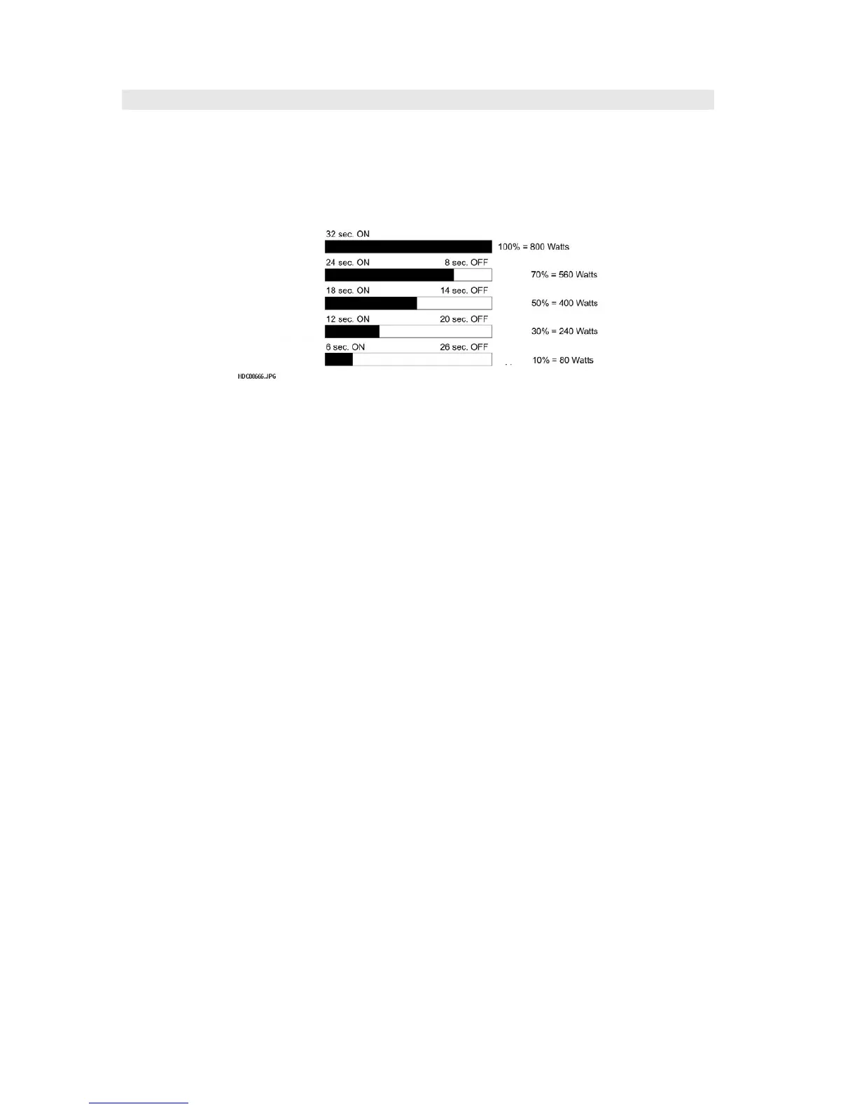 NOTE: The ON/OFF time ratio does not exactly correspond to the percentage of microwave power,