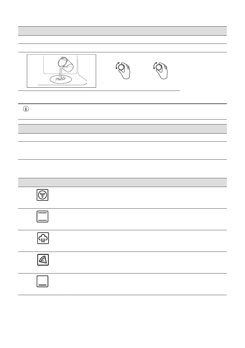 Ugnsutrymmets fördjupning rymmer 250 ml. Fyll inte på ugnens botten när ugnen är påslagen eller medan