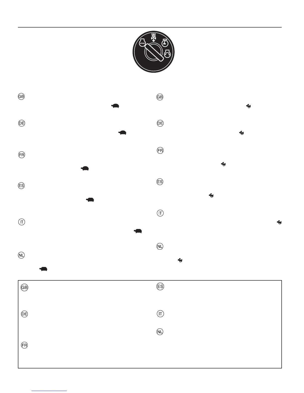 ”(lento). Sollevare il tagliaerba e girare la chiave su “STOP”.