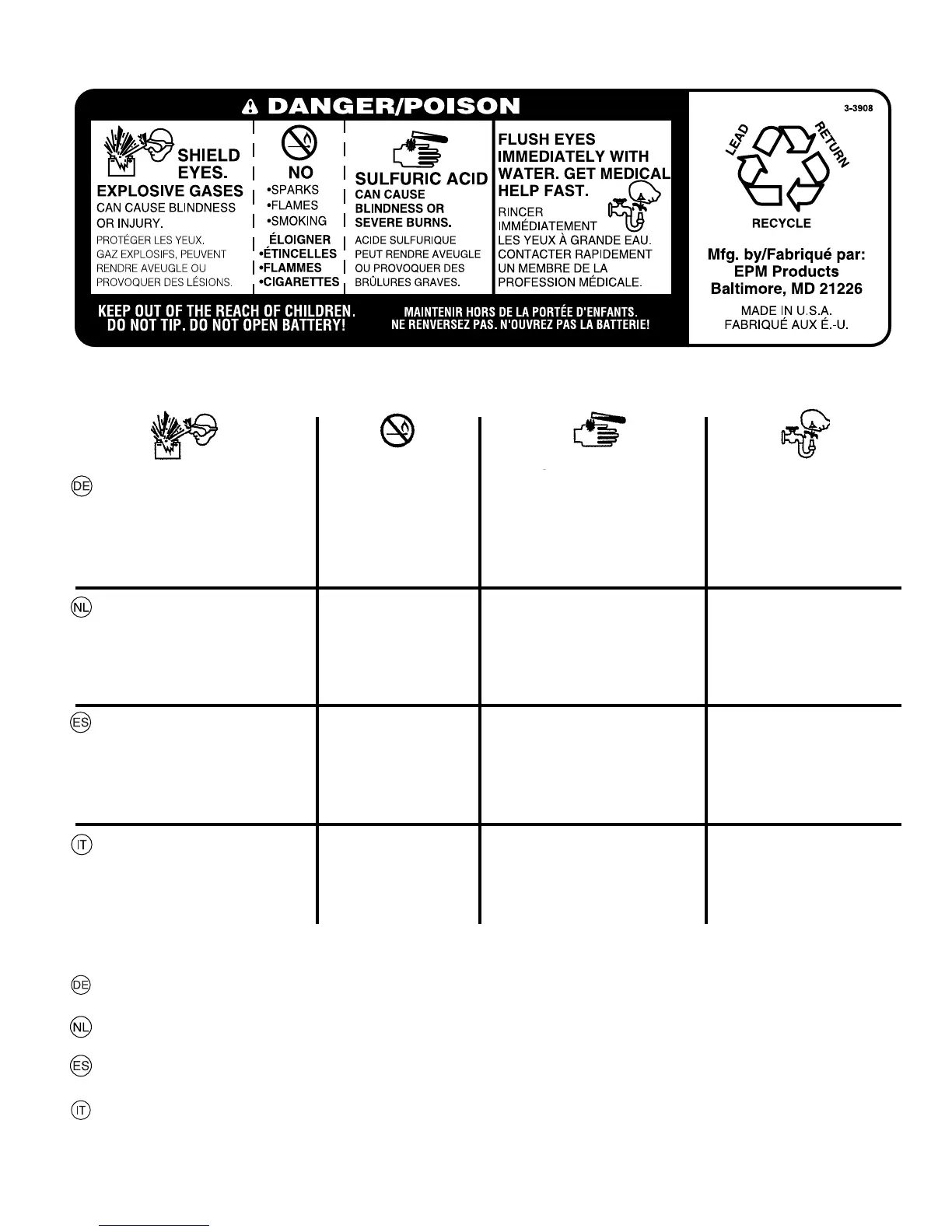 TENERE LONTANO DALLA PORTATA DEI BAMBINI. NON INCLINARE. NON APRIRE LA BATTERIA!