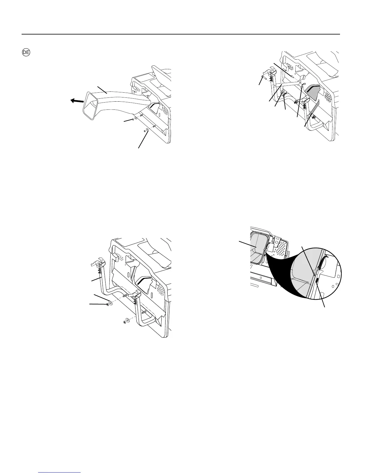 • Nehmen Sie den Auswurfkanal aus dem hinteren Teil des