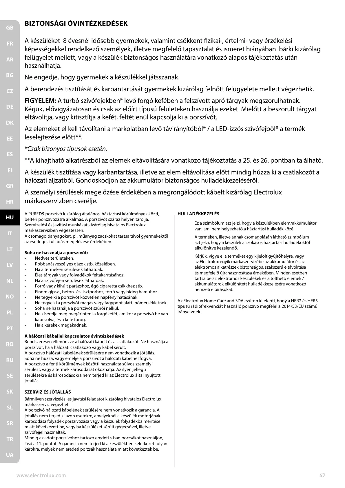 Szervizelési és javítási munkákat kizárólag hivatalos Electrolux