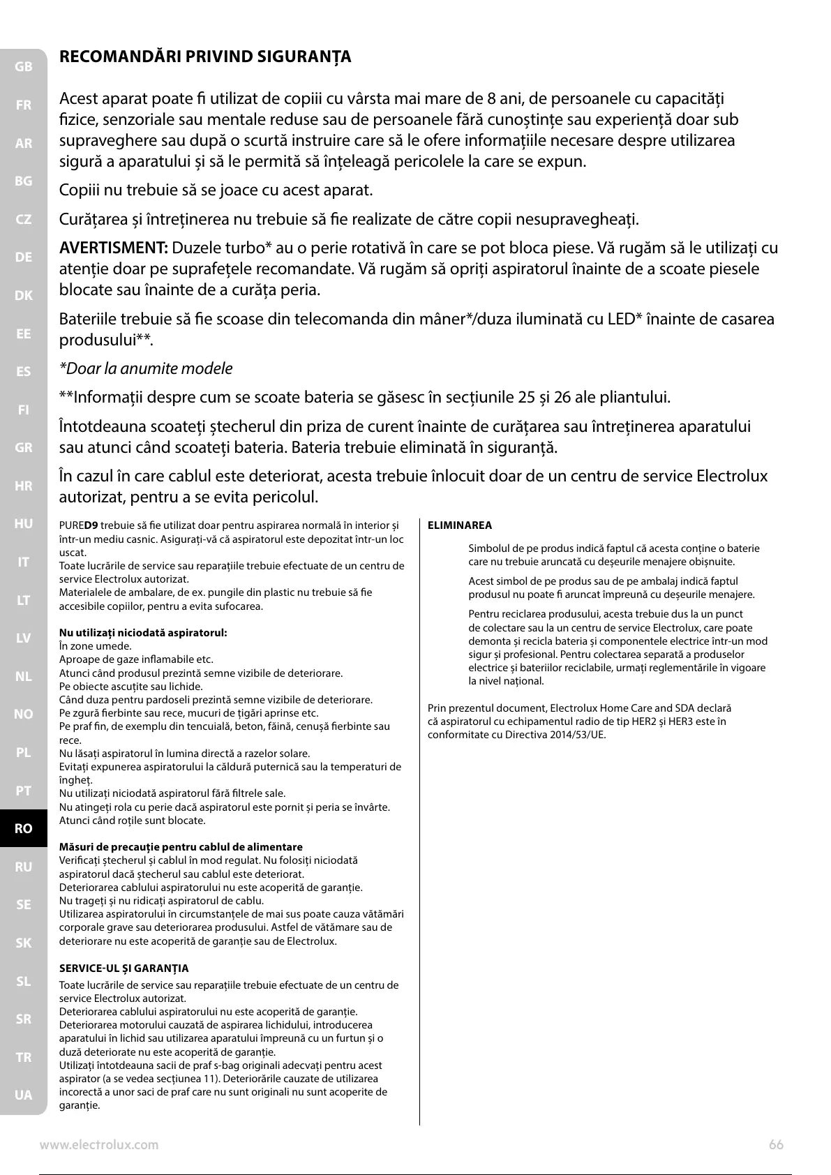 Prin prezentul document, Electrolux Home Care and SDA declară