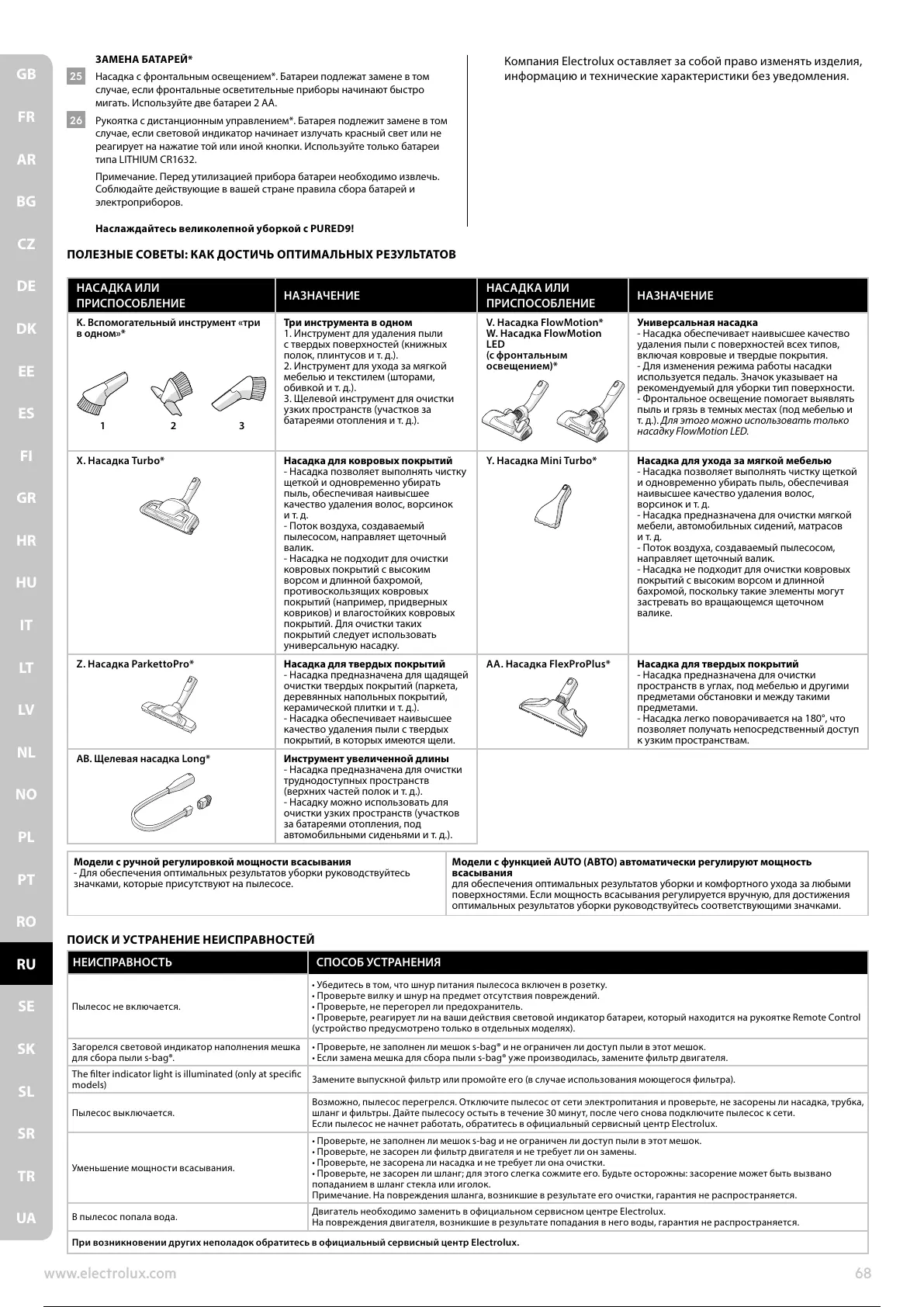 Если пылесос не начнет работать, обратитесь в официальный сервисный центр Electrolux.