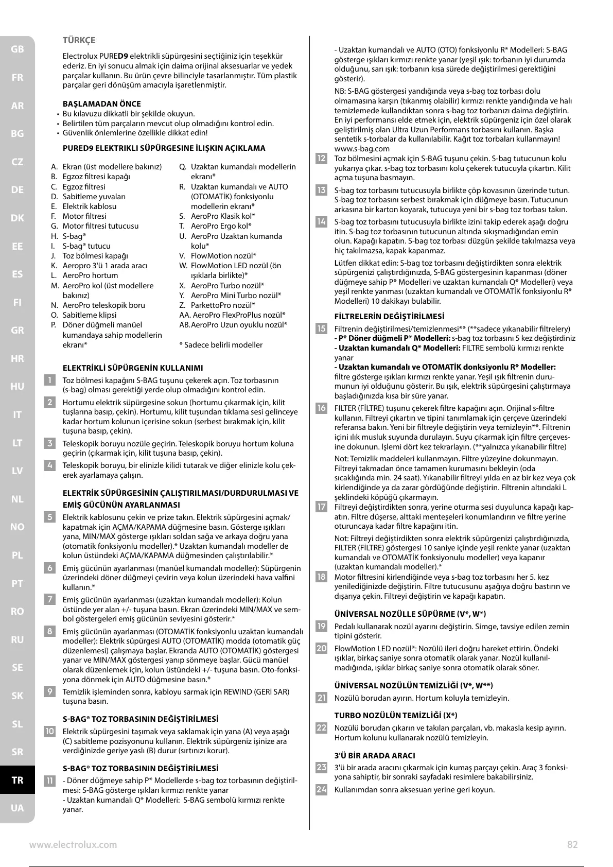PURED9 ELEKTRIKLI SÜPÜRGESINE İLIŞKIN AÇIKLAMA