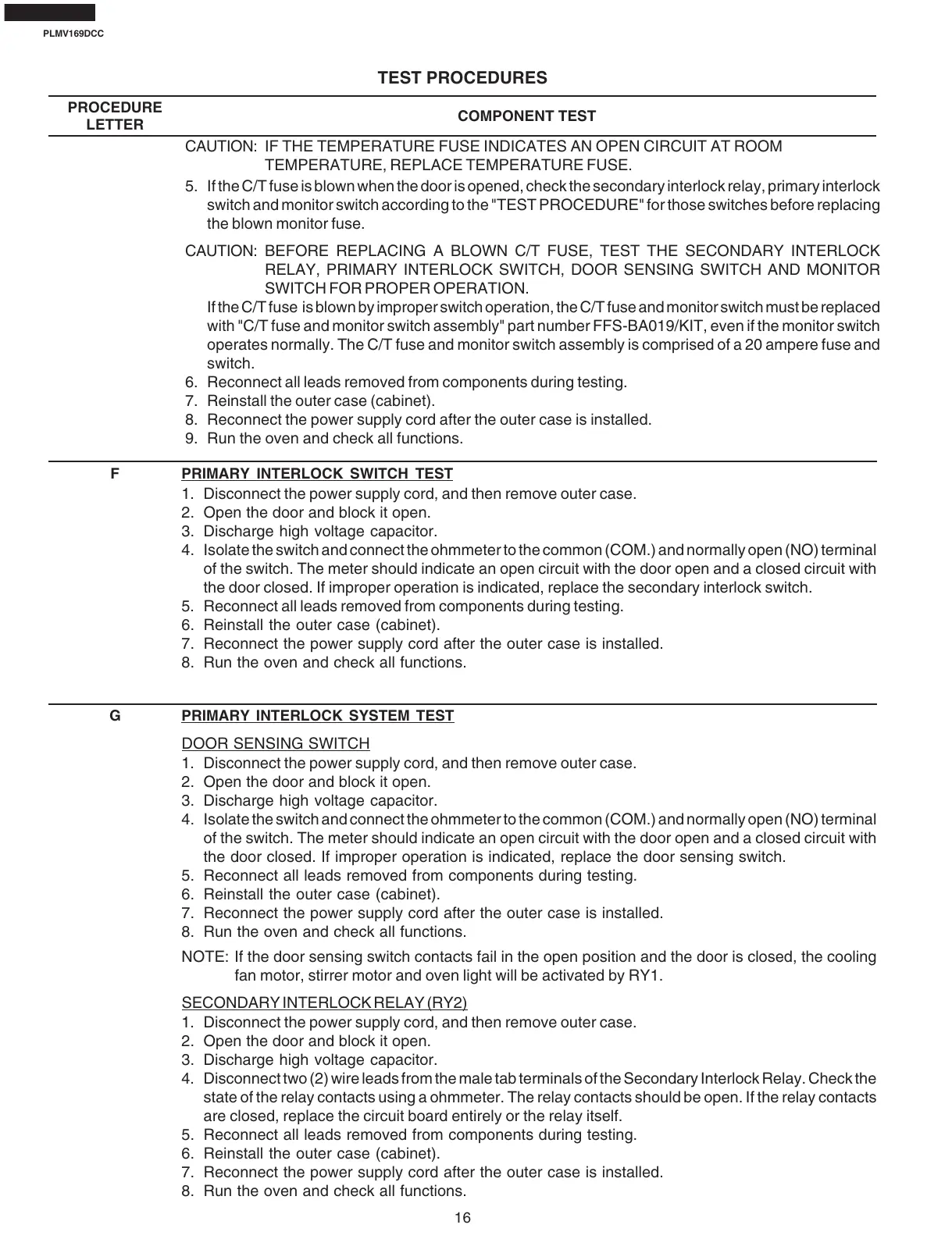 the door closed. If improper operation is indicated, replace the secondary interlock switch.