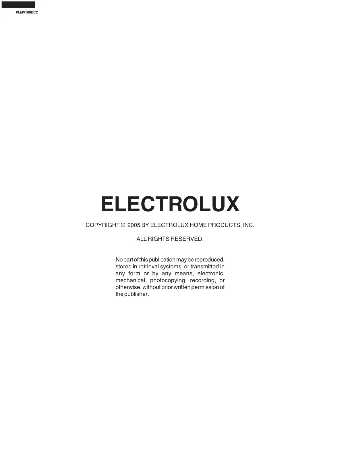 COPYRIGHT © 2005 BY ELECTROLUX HOME PRODUCTS, INC.