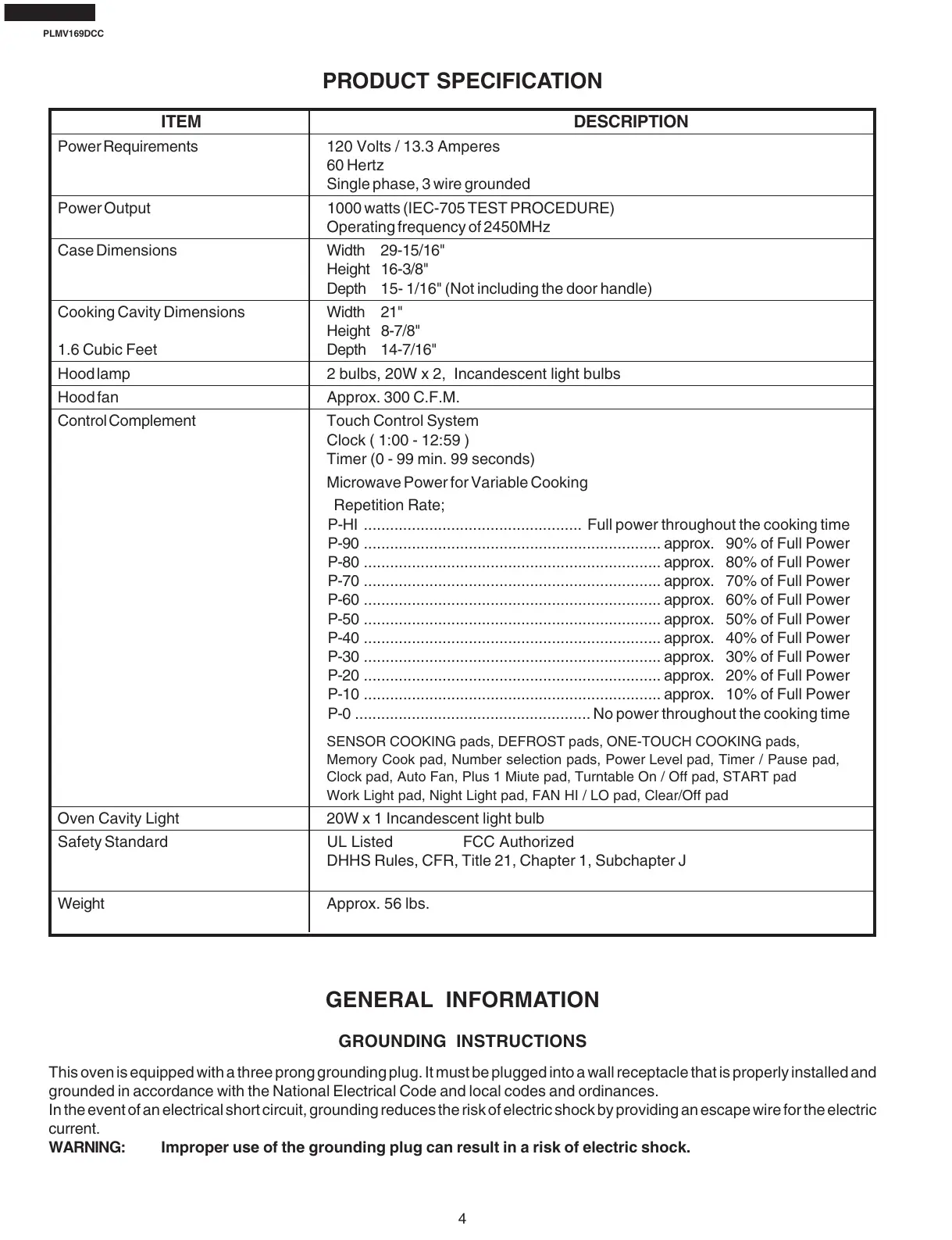 WARNING: Improper use of the grounding plug can result in a risk of electric shock.