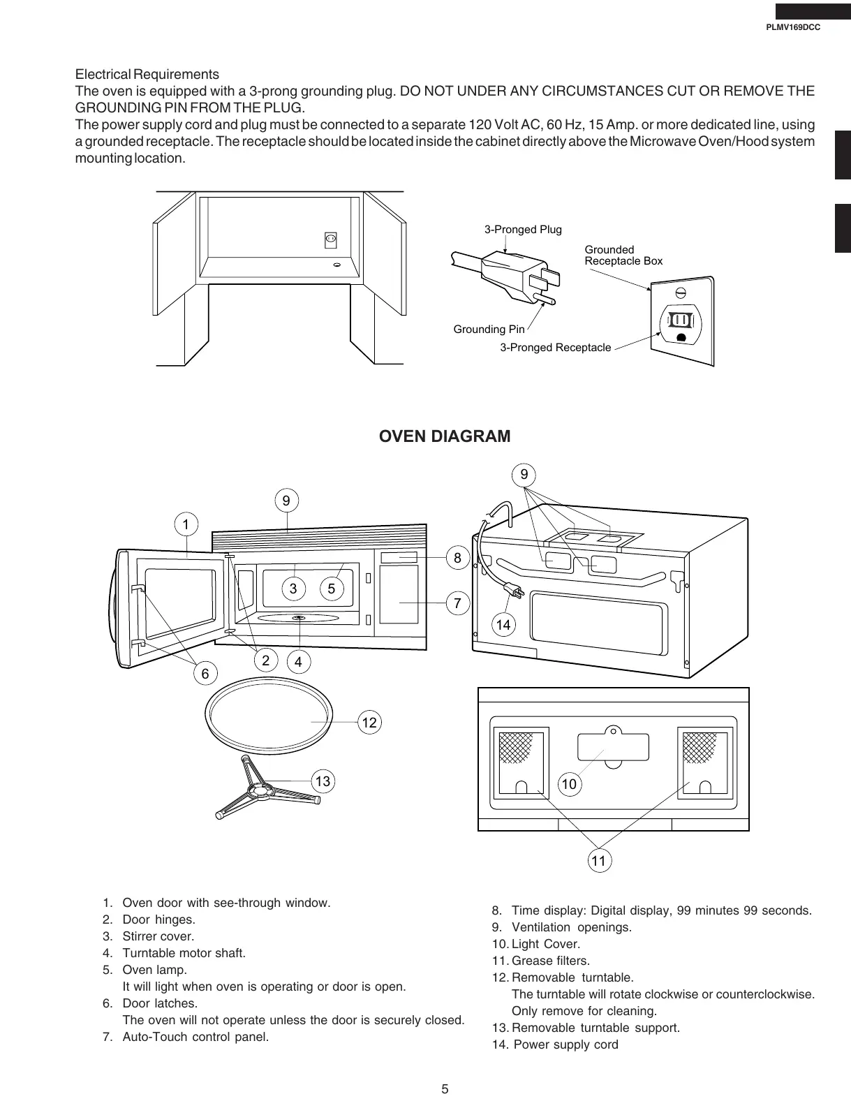 The oven is equipped with a 3-prong grounding plug. DO NOT UNDER ANY CIRCUMSTANCES CUT OR REMOVE THE
